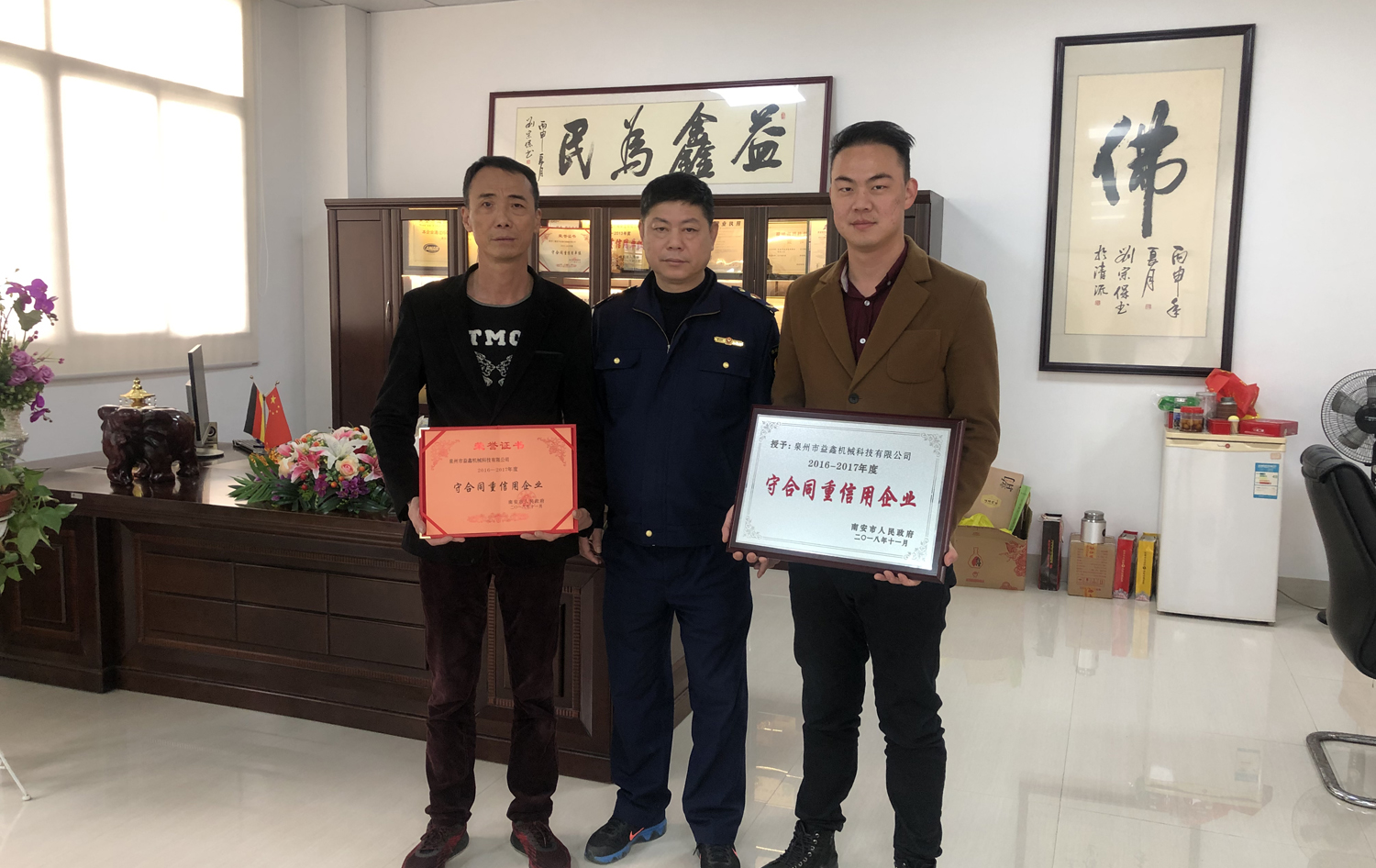 堅守“誠信”底線,贏得企業發(fā)展 | 益鑫磚機榮獲“泉州市守合同重信用企業”榮譽